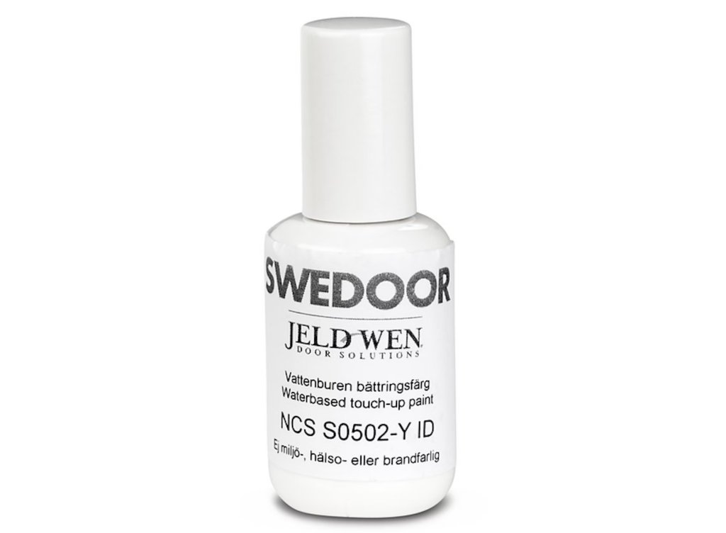 Bättringsfärg på burk som används för att laga små skador på ytterdörrar.
