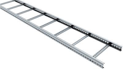 Sendzimirförzinkad kabelstege med perforerade stegpinnar. Pinnavstånd: c-c 250 mm. Brottlast: mer än eller lika med 1,7 ggr maxlast.