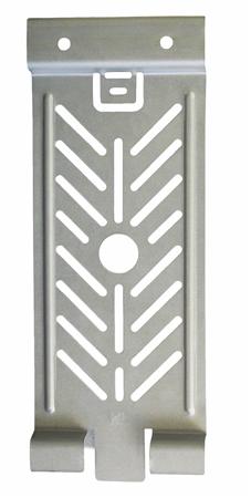 Armaturplåt avsedd till stegtyp MP-S, MP-TS och MP-Z, placeras mellan två stegpinnar för montering av armaturer, dosor m.m. under stegen. Låses genom att vika en tunga runt en stegpinne eller genom skruvförband.