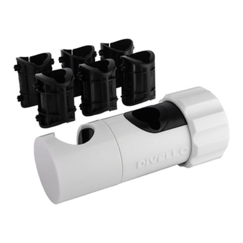 Universell glider (handduschhållare) för duschstång (Ø 18-25 mm). DIVELLO ORIGINAL™: Armaturoberoende och optimerande originalprodukt. Installeras direkt (utan demontering) på alla duschstänger (Ø 18, 19, 20.6, 22, 24 och 25 mm).
