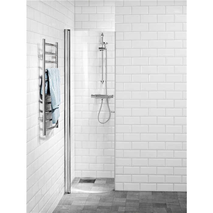 Alterna Picto Duschvägg i 6 mm härdat säkerhetsglas, 1950 mm hög, vändbar och enkelförpackad. Kan monteras singel eller i valfri kombination med annan rak eller rund Alterna duschvägg. Dörrarna kan även öppnas inåt för platsbesparing och höjs 5 mm vid öppning. Välj magnetlist efter vald kombination. Duschväggen har justerbar väggprofil och levereras komplett med släplist, handtag, skruv och plugg.Glöm inte att lägga till magnetlist:För rak x rak och svängd x svängd duschhörna: 739 09 59 Magnetlist standard. För rak x svängd duschhörna: 739 09 60 Magnetlist special. Beställ 2 stycken dörrar och 1 magnetlist för komplett duschhörna.