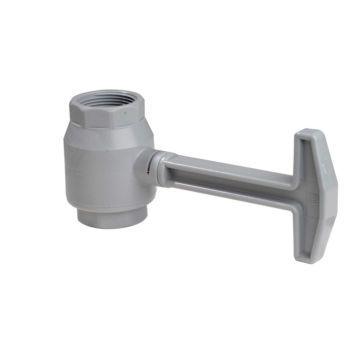 Esbe kulventil, med kula av tefloninblandad acetal och packningar av teflon.