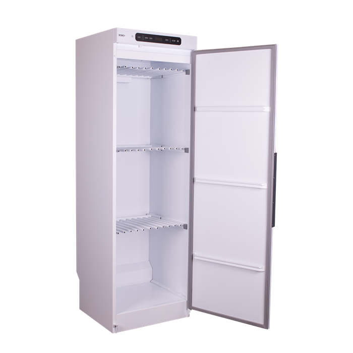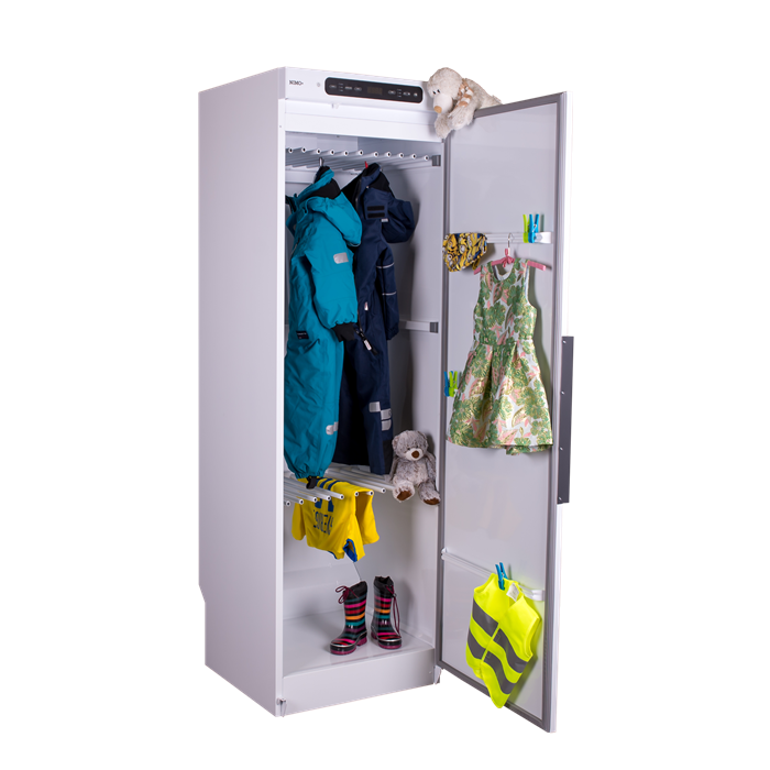Marknadens snabbaste torkskåp som torkar dina kläder skonsamt. Med sensor tekniken sparar du normalt 40 % energi och ända upp till 85 % energi jämfört med traditionella torkskåp med hjälp av det unika programmet ECO+. Den inbyggda sensorn stänger av torkningen när kläderna är torra. Förutom automatprogram finns även möjlighet att styra torkningen manuellt. Tre rader uppfällbara och utdragbara hängare. Dessutom är dörrensinsida utrustad med tre dörrhängare. Levereras med ventilationsanslutningar. Torkskåpet har justerbara fötter