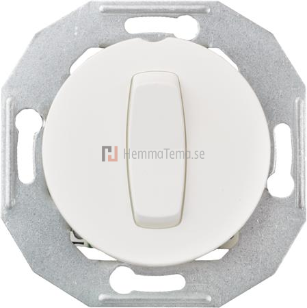 Renova Vippströmställare kors, 16A, för montage i apparatdosa c/c 60 mm. Inkl fästklor. Vid utanpåliggande montage används dosa 22 mm, E18 311 94 Snabbanslutning, kompletteras med valfri Renova ram. Vit