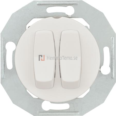 Renova Vippströmställare kron för montage i apparatdosa c/c 60 mm. Inkl fästklor. Vid utanpåliggande montage används dosa 22 mm, E18 311 94/95. Strömställaren har två neutrala överkopplingsklämmor Snabbanslutning, kompletteras med valfri Renova ram. Vit