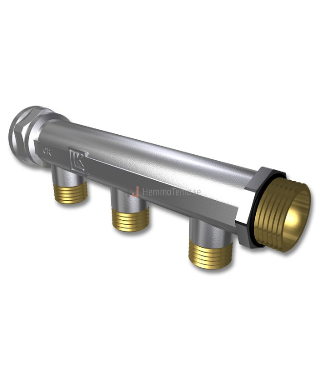 Påbyggnadsbar fördelare för värme- och tappvattensystem. Monteras på vägg i LK Fördelarkonsol eller i LK Fördelarskåp UNI. Tillverkad av avzinkningsbeständig mässing, förnicklad. Fördelare UNI 2-G15, 3-G15 och 4-G15 har anslutning G20 (ut- och inv gg) för matningsledning och anslutning G15 c/c 50 mm utv gg på avsticken. Fördelare UNI 2-G20 har anslutning G20 (ut- och inv gg) för matningsledning och anslutning G20 c/c 50 mm utv gg på avsticken. Samtliga typer har o-ringstätning på den utvändiga G20 sidan för matningsledning vilket underlättar hopmontering av 2 st fördelare utan ytterligare tätning.Rör X16, A16, X20 samt A20 kan anslutas på avsticken G20 både med LK Anslutningskoppling och med LK PressPex Pressanslutningskoppling.
