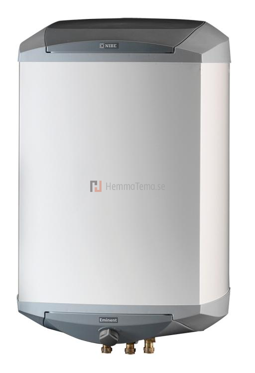NIBE EMINENT täcker med sina olika storlekar många behov av varm vatten. Med den minsta, NIBE EMINENT 35, kan du ta en snabbdusch och ändå ha vatten till disken. Med exempelvis NIBE EMINENT 100 kan du täcka större delen av ditt varmvattenbehov under sommarhalvåret. Det designade ytterhöljet av stålplåt har gavlar av slagtålig plast i matchande toner. NIBE EMINENT kan installeras hängande vertikalt på medföljande konsol med anslutningarna nedåt, eller liggande horisontellt. För modellen NIBE EMINENT-E med korrosionsskydd av emalj, krävs ett fritt utrymme ovanför för inspektion av anoden. Vattenmagasinet består av antingen en behållare helt i rostfritt stål eller en stålbehållare med invändigt korrosionsskydd av koppar eller emalj. Isoleringen består av freonfri, formgjuten polystyren (EPS) för bästa värmeisolering. Varmvattenberedaren är försedd med sladd och stickpropp för enkel anslutning till 230 V jordat uttag (ger effekt 1 kW). Kan också anslutas till 400 V 2-fas (ger effekt 3 kW). Försedd med en komplett ventilutrustning, bestående av blandningsventil, avstängnings-/ backventil, säkerhetsventil med av tappningsfunktion. Termostaten är inställbar upp till 80 °C.